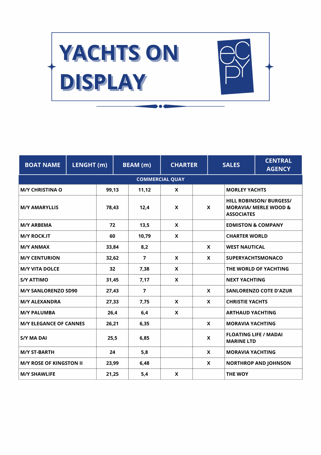 List of the Yachts for the June 27th Open Day :